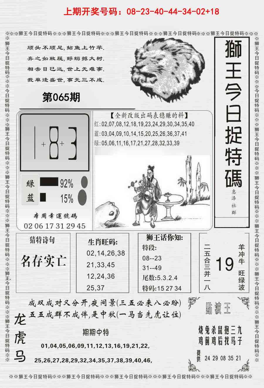 065期: 澳门六合彩彩圖信封【狮王平特】每期自动更新