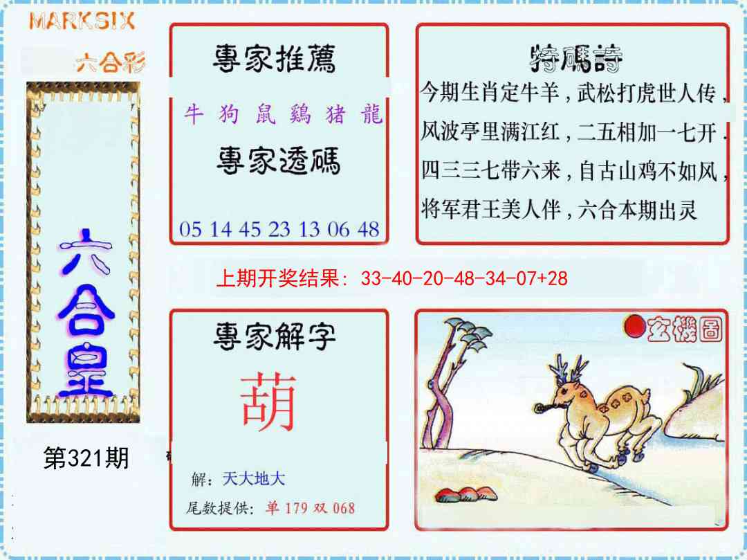 321期: 澳门六合彩彩圖信封【蓝财神报】每期自动更新